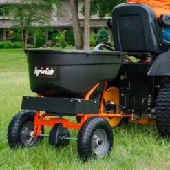 Spreading rock salt and ice melt will be a quick and easy process in the harsh and cold winters thanks to the 130 lb. Push Spreader. The large 13 inch x 5 inch pneumatic tires provide smooth transport on snowy or icy surfaces. An enclosed gearbox protects the gears from the corrosive rock salt or ice melt. The stainless-steel axle and impeller shaft will keep your spreader performing season after season. Depending on the material being spread and speed of application, the 130 lb. Push spreader can cover 25,000 square feet or roughly a ½ acre on one fill. A hopper cover, deflector and grate are included to keep the material dry and to narrow the spreading pattern to prevent unwanted material from being applied onto your lawn.