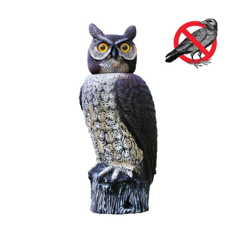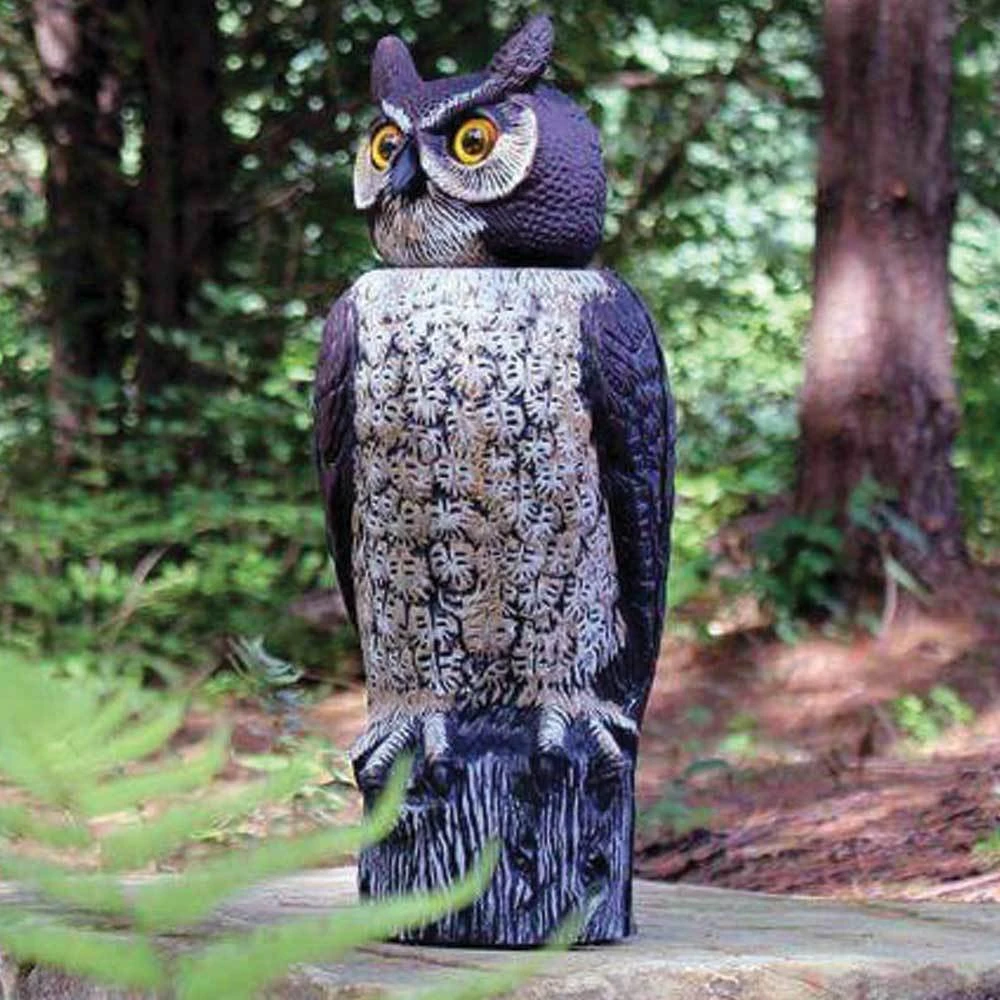 - Life-like owl that repels birds, squirrels, and other pests