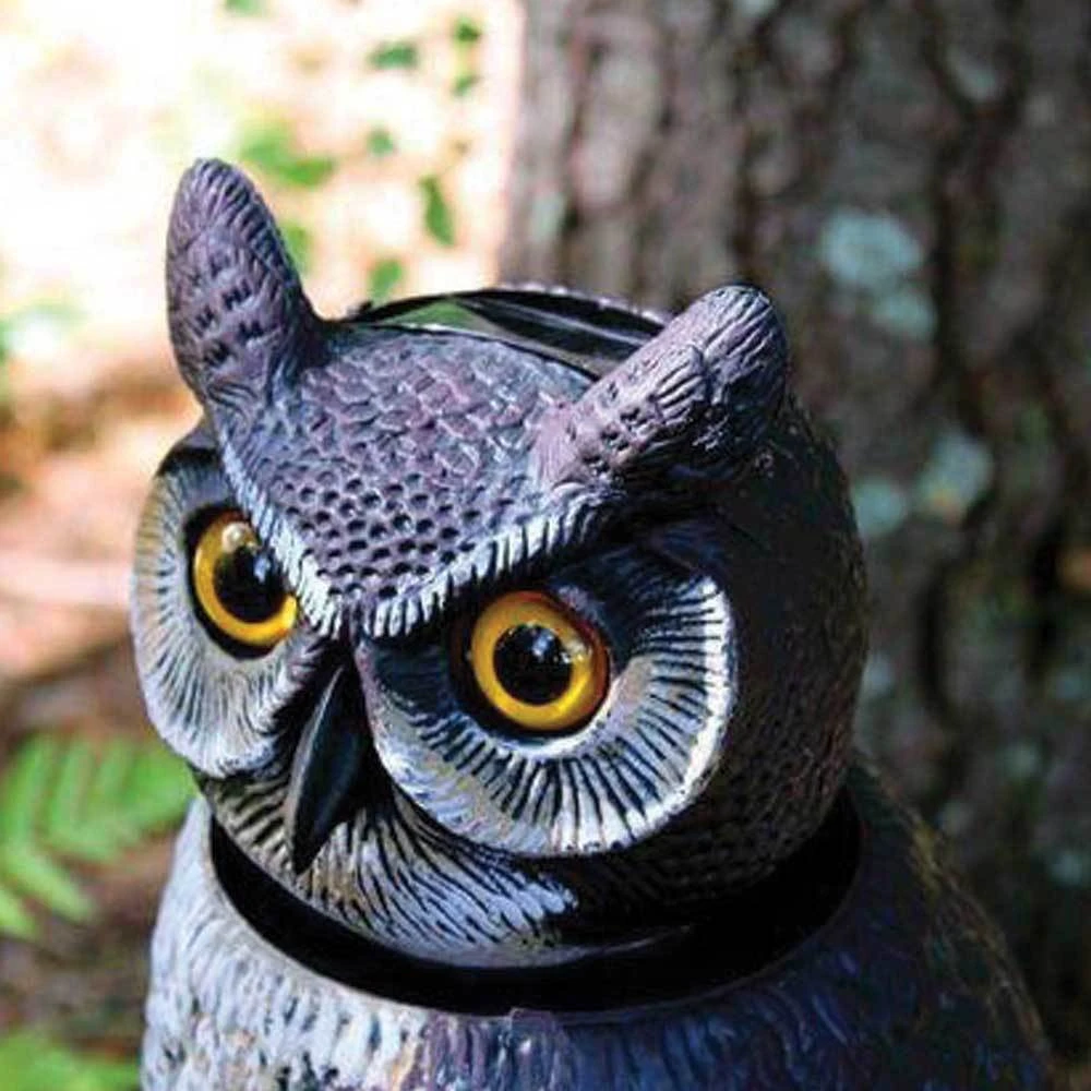 Protect your hard-earned produce from unwanted birds, rabbits, squirrels, and more. This SOL-R Action Owl is an attractive scarecrow whose head moves every few minutes, keeping unwanted wildlife on alert. No batteries or power cords are needed, making it easy to move around your garden every week so pests donft.t grow accustomed to its presence.