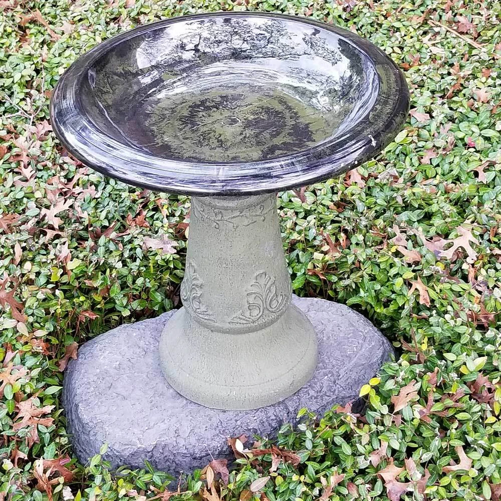 Exaco Marbleized Bird Baths use three pieces that can easily be assembled or disassembled for quick storage. The center section can be filled with sand for additional stability in windy regions. These stable and attractive bird baths are a beautiful addition to any property.