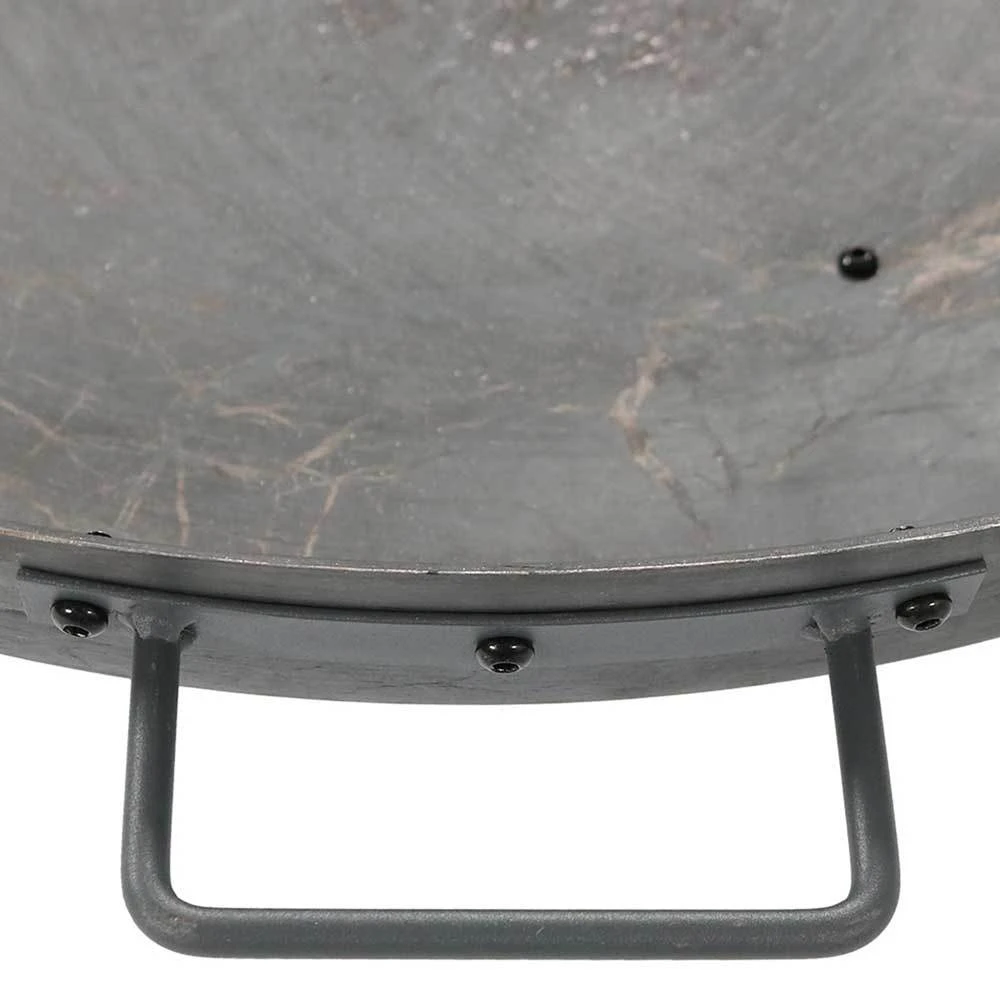 - Heavy-Duty Construction: the outdoor fire pit bowl is made from a sturdy and durable steel-colored cast iron material that is oxidized for a contemporary rustic look that will complement your outdoor decor for years to come. This unique finish is formed when metal is exposed to water and oxygen. Because of this, the color may continue to change over time. To limit color change, keep this product covered when not in use.