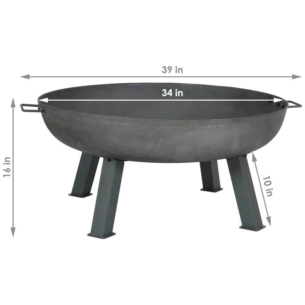 - Perfect Size for Gatherings: this cast iron dish fire pit measures 16 inches tall x 9 inches deep x 34 inches in diameter and weighs 35 pounds. From handle to handle, the round fire bowl measures 39 inches wide making it the ideal size to gather around with family and friends for a memorable night.